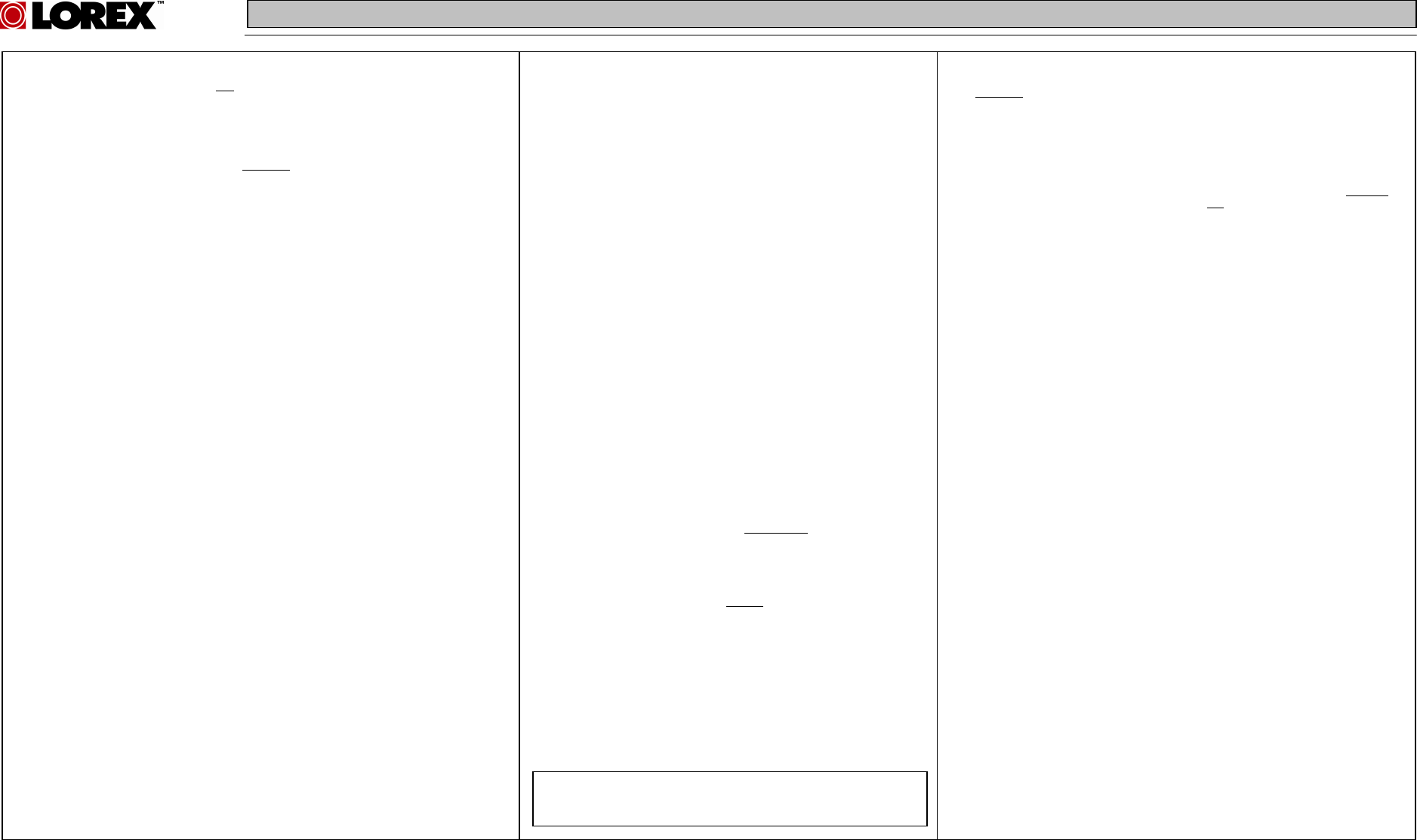 North America: 1-888-42-LOREX (1-888-425-6739)